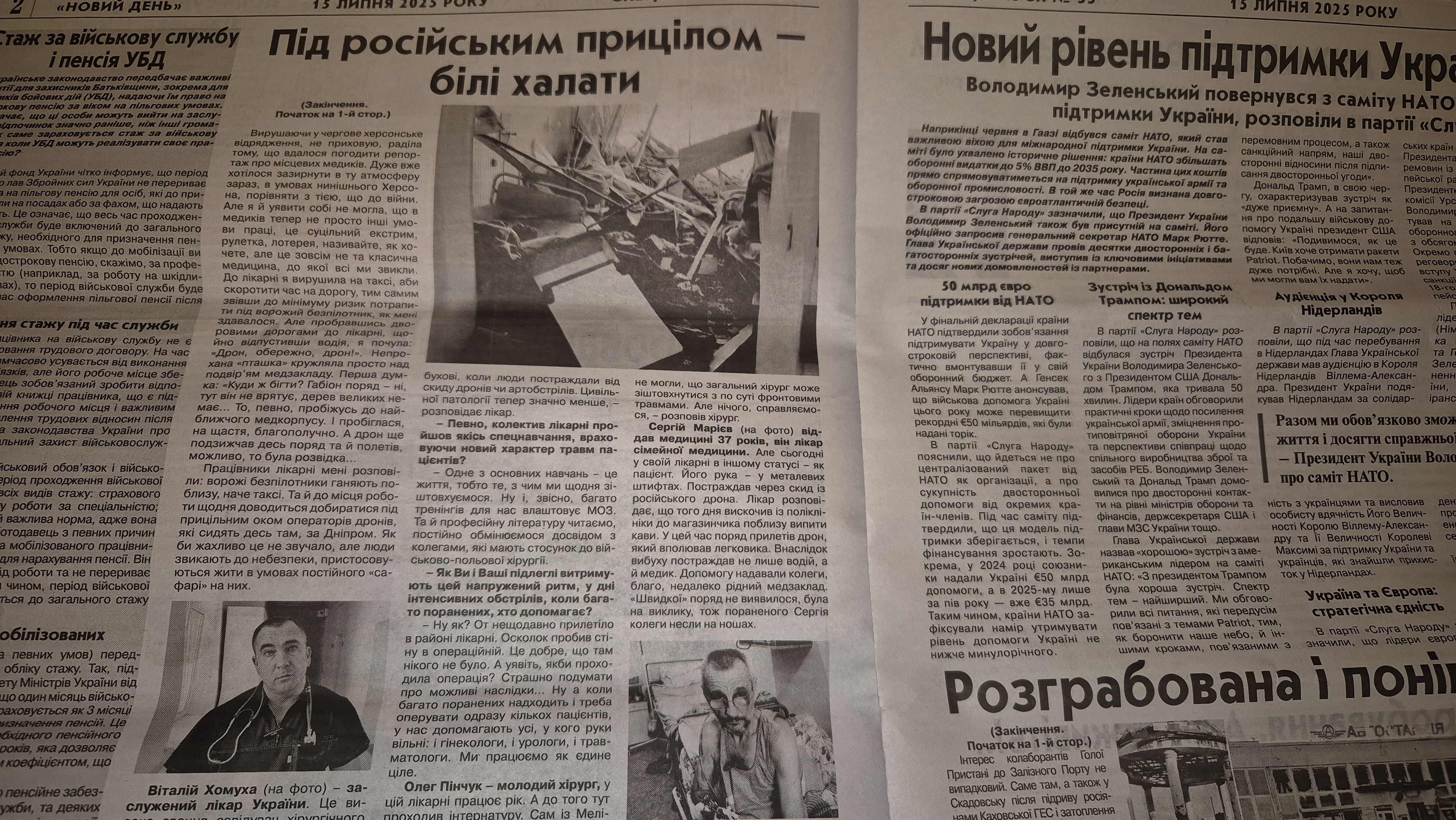 Час летить стрімко, і ось вже пів літа 2025-го – в історії. Ну а ми продовжуємо висвітлювати буремні реалії життя на Херсонщині, на жаль, тепер більшість новин таких. Днями друком вийшов черговий, 33-й номер газети “Новий день”. Наклад вже розподілено між хабами для переселенців у різних регіонах України. Ну а більша його частина поїхала на правобережжя Херсонщини, зокрема, сам Херсон.