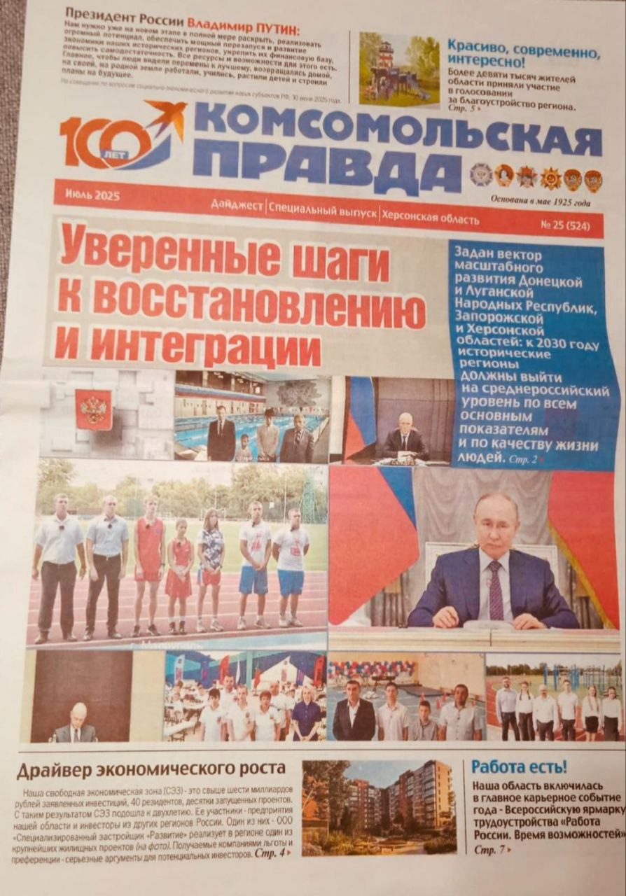 «Друковані ЗМІ стали одним з ефективних інструментів донесення правди до жителів нових регіонів, – розповів в ефірі окупаційної ТРК «Таврия» її директор Євгеній Глотов. – У 15-кілометровій зоні, яка максимально близько знаходиться до фронту, люди з задоволенням читають газети, тому що вони хочуть знати, що відбувається. Ми через певні технічні можливості, висоти і географічне розташування не завжди можемо донести сигнал, і тут нам допомагають газети».