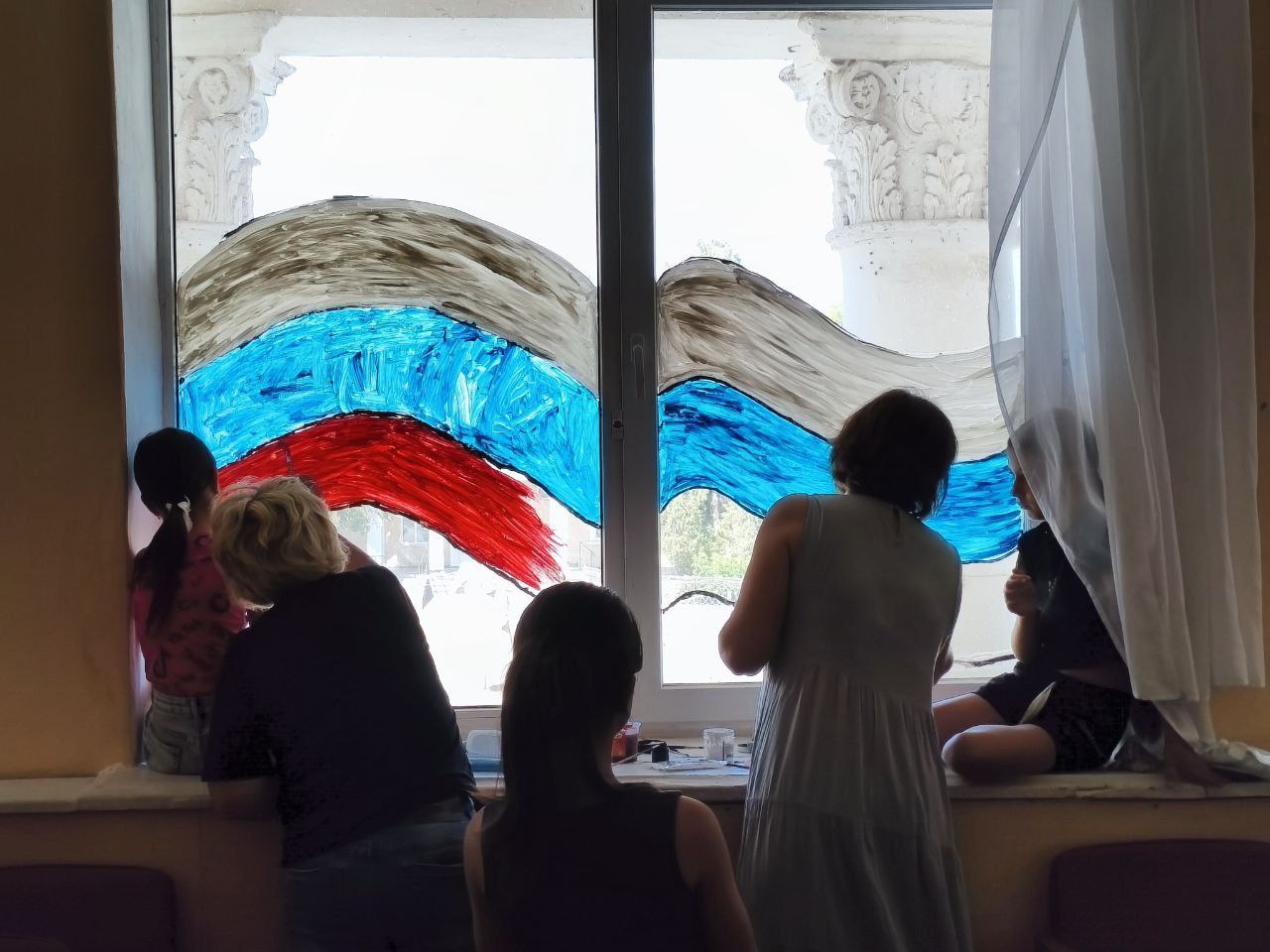 Дітей також змусили прикрашати символікою країни-окупанта вікна закладів, назвавши це акцією «Вікна Росії».