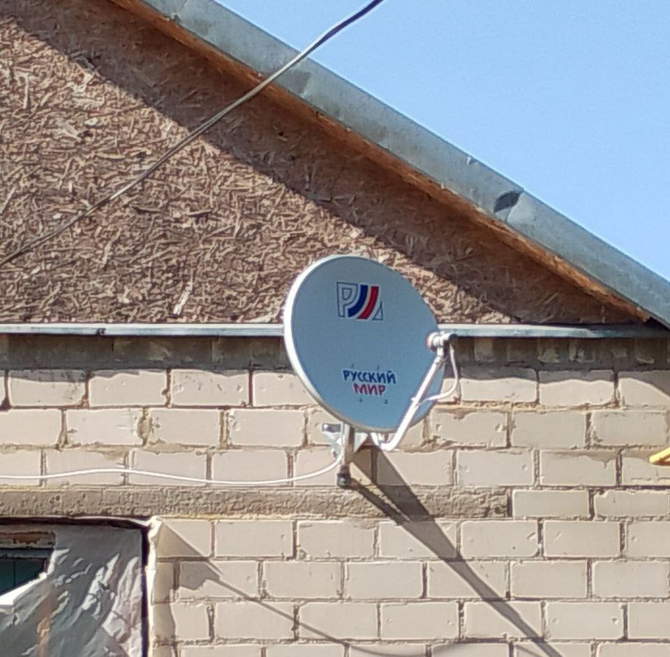 На окупованому лівобережжі продовжується запекла боротьба з супутниковими тарілками, встановленими у доокупаційні часи. За три конвертера на тарілці окупанти називають їх «гориничами» і нещадно знищують болгарками. А на їх місце, якщо у будинку є господарі, ставлять окупаційні комплекти «русскій мір», де всі як один канали транслюють кремлівську брехню.