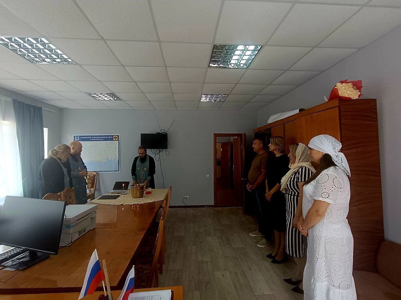 Того ж Миколу Калініченка разом з єпископом Скадовським і «Альошкінським» окупаційної РПЦ Філаретом протоієреєм Миколою Канюкою колаборанти погукали на «чин освячення» будівлі окупаційної адміністрації Скадовського «муніципального округу». Філарет, повідомляють пропагандисти, «побажав всьому колективу адміністрації здоров’я і Божої благодаті у їх відповідальних трудах, підкресливши значимість спільної роботи у благих справах для розвитку округу і підтримки духовних цінностей у суспільстві».