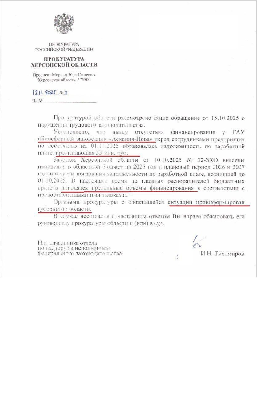 А з працівниками окупаційного заповідника «Асканія-Нова», які давно мали забути, як виглядають гроші, взагалі анекдотична ситуація трапилась. Окупаційна прокуратура, яка на вимогу колаборантів провела перевірку, дійсно, виявила, що станом на листопад їм заборгували більше 55 мільйонів рублів. Як окупаційне відомство відреагувало? «Проінформувало про ситуацію губернатора області». Того самого, нагадаємо, який до цього вже кілька разів вимагав від підлеглих ліквідувати всі борги у заповіднику. Коло замкнулось.