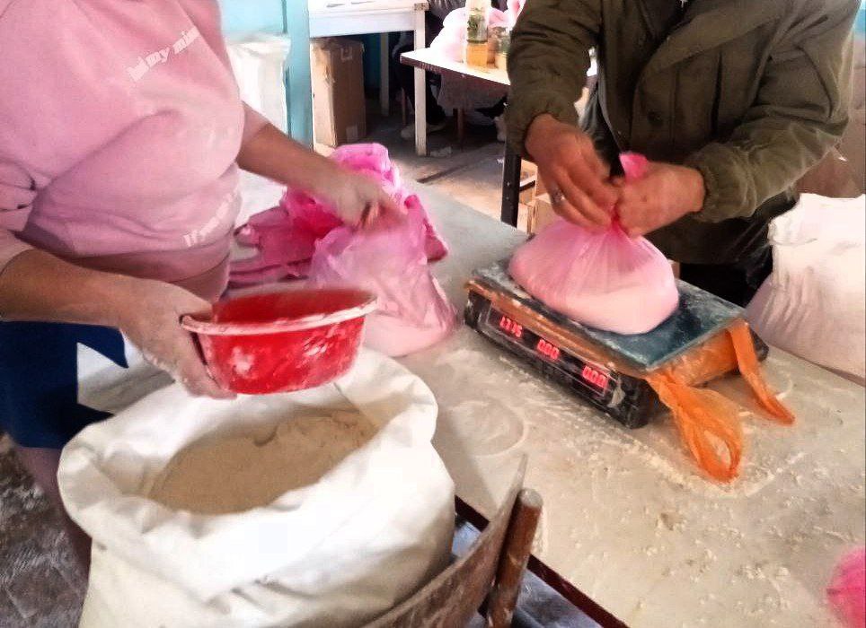 «У рамках програми допомоги жителям, які проживають у 15-кілометровій зоні від лінії бойового зіткнення, були видані гуманітарні набори з основними продуктами харчування: крупами, макаронами, рослинною олією та іншими предметами першої необхідності», – повідомила окупаційна адміністрація Великолепетиського «муніципального округу». «Найближчим часом кожен житель округу отримає свою гуманітарну допомогу», – обіцяє окупаційна адміністрація Горностаївського «муніципального округу». І показує фото, як ділять по пакетах борошно.