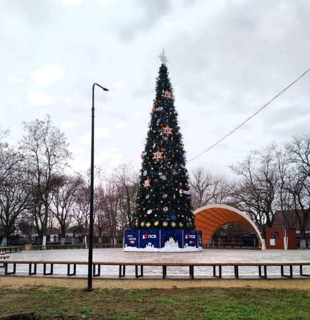 Ялинку від окупаційного «Промсвязьбанка», яка ще минулого року стояла на площі Відродження, цьогоріч встановили у парку ім. Т.Г. Шевченка. У попередні 3 роки саме це також 16-метрове дерево було головною ялинкою міста. Чому зараз воно раптом втратило свій статус, невідомо. Скоріш за все, окупаційному керівництву «регіону» потрібно було відмити кошти на новій покупці. Але як тепер окупантам знайти скільки людей, щоб святкувати відразу біля двох міських ялинок у Генічеську, питання.