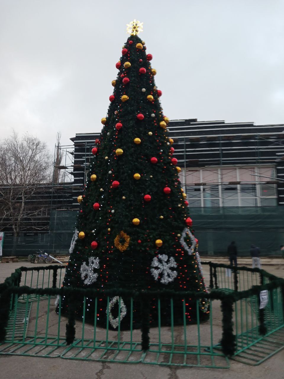 Головну ялинку Нової Каховки окупанти поставили біля кінотеатру «Юність». Але навряд чи новокаховчани ризикнуть до неї наближатись. На відкритій площі вони легко можуть стати здобиччю для російських дронів, а пропагандисти потім обвинуватять в обстрілах ЗСУ. Тож ялинка стоїть одиноко.